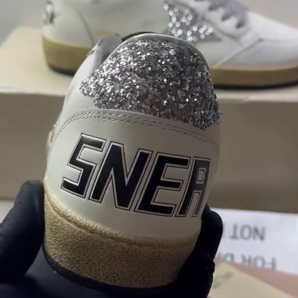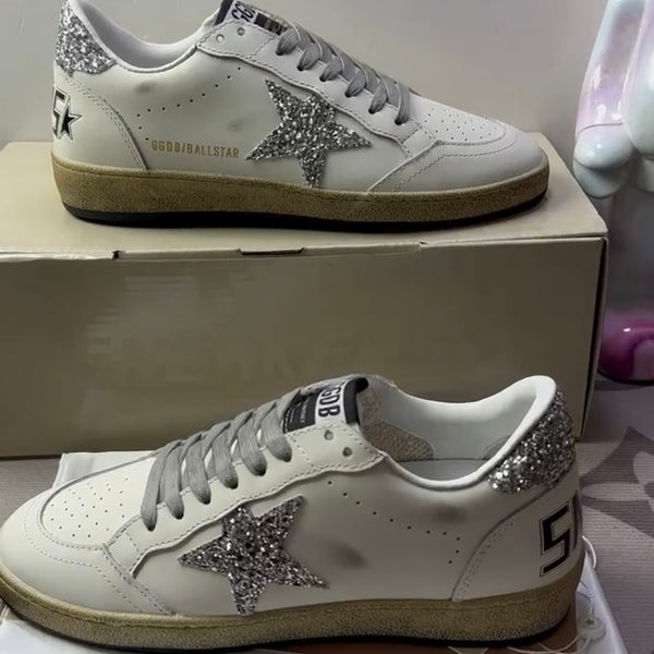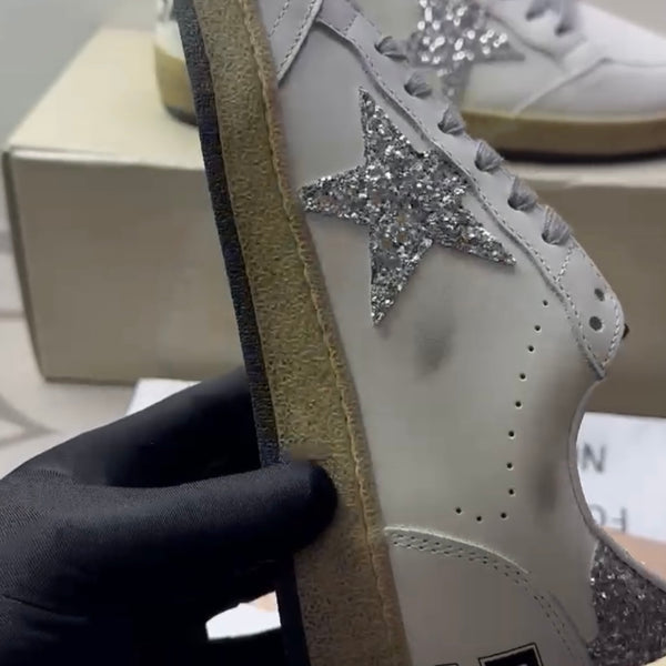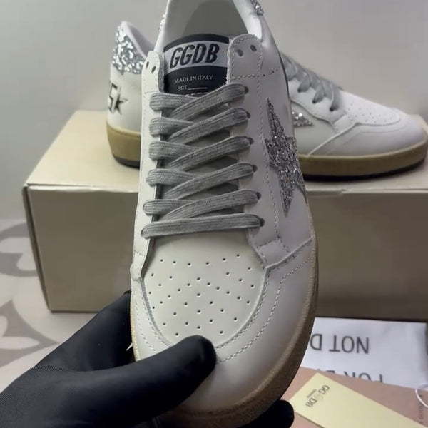 Golden Goose Ball Star White Silver Glitter (Women's)