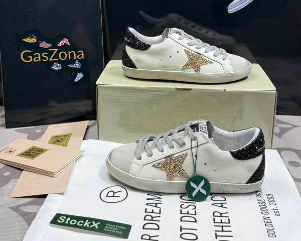 Super-Star in nappa leather with gold glitter star and black glitter heel tab