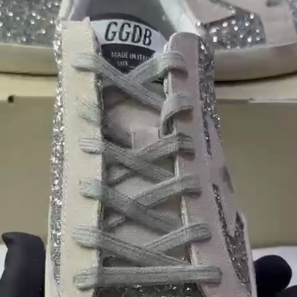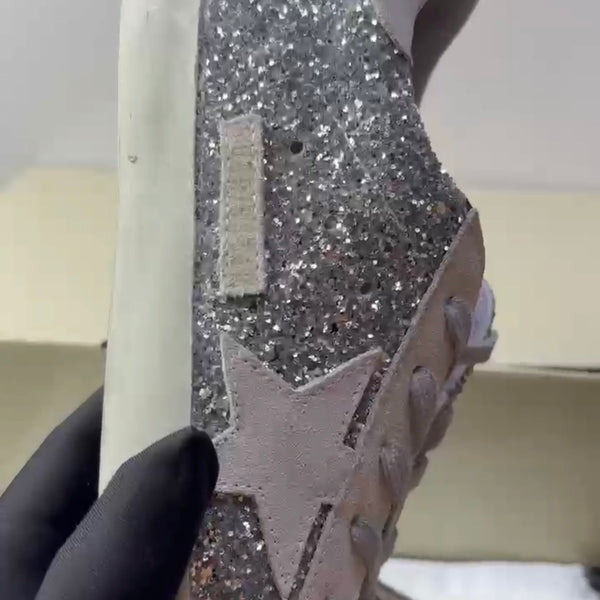 Women's Super-Star in silver glitter with ice-gray suede star