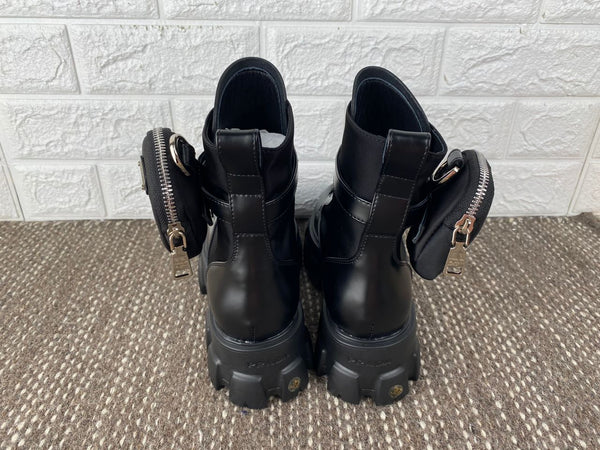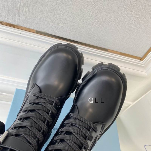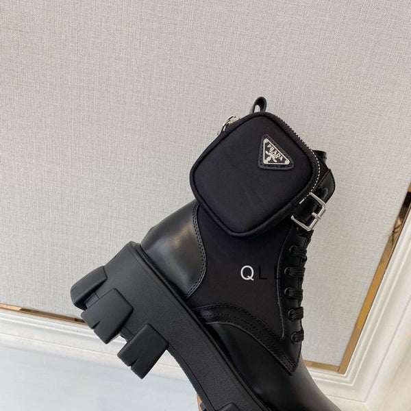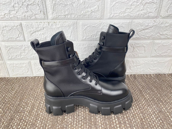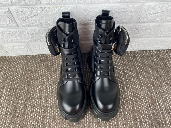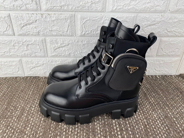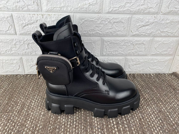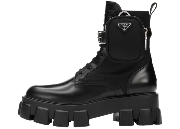 Prada Monolith 55mm Pouch Ankle Boots Black Leather